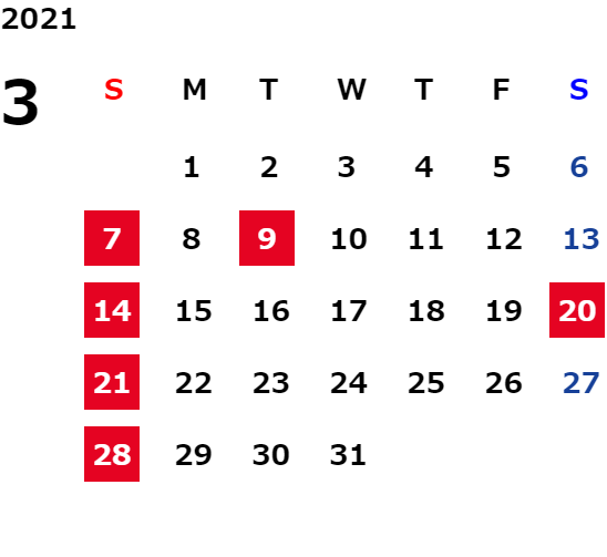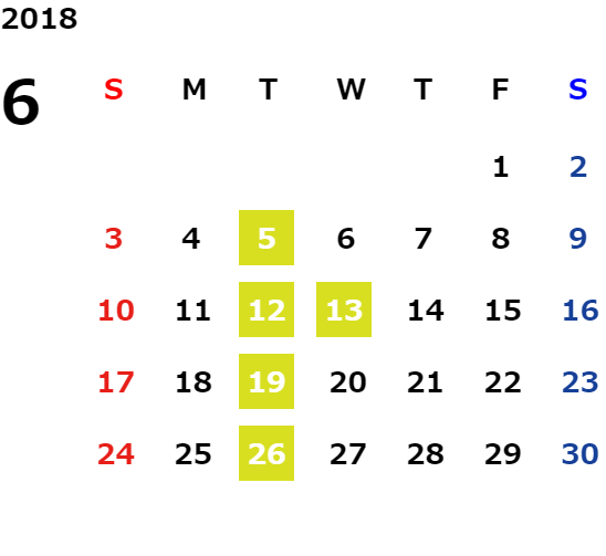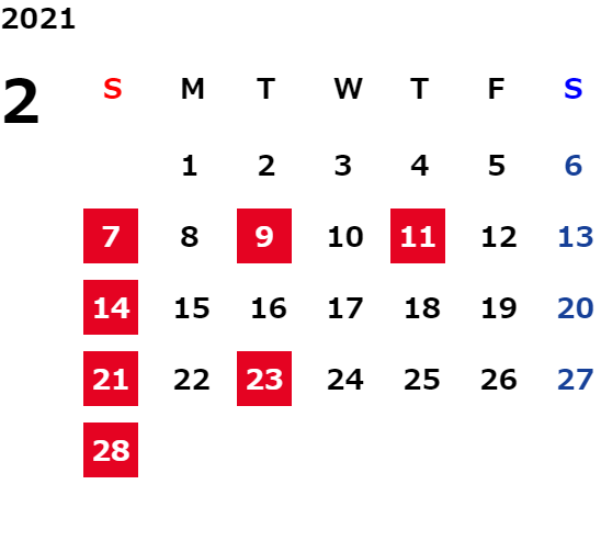 毎週火曜日・第2水曜日