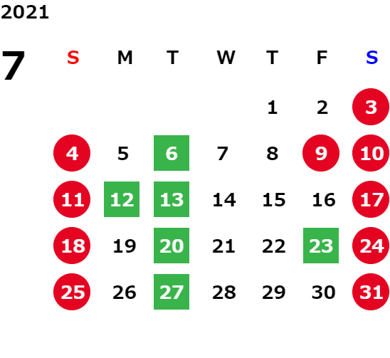 営業日カレンダー