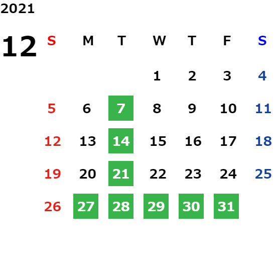 火曜日、年末年始