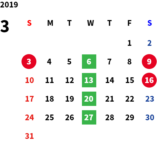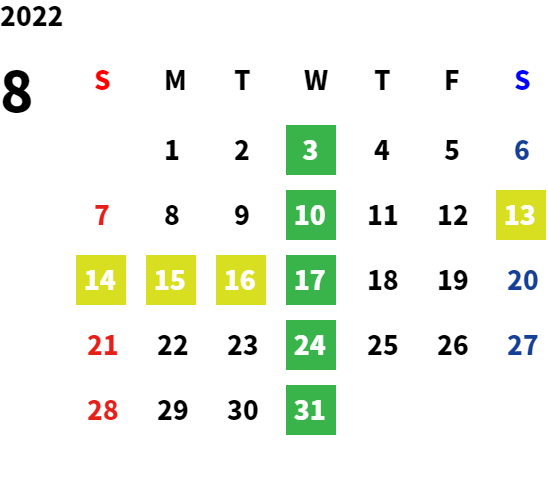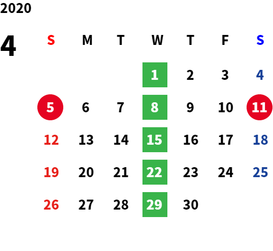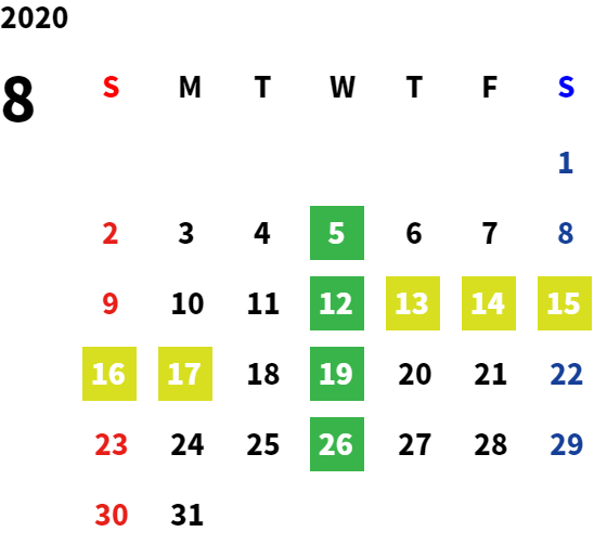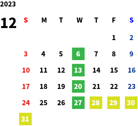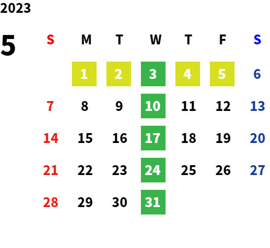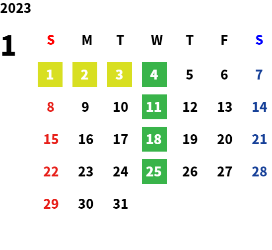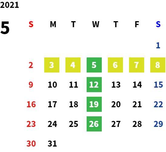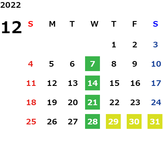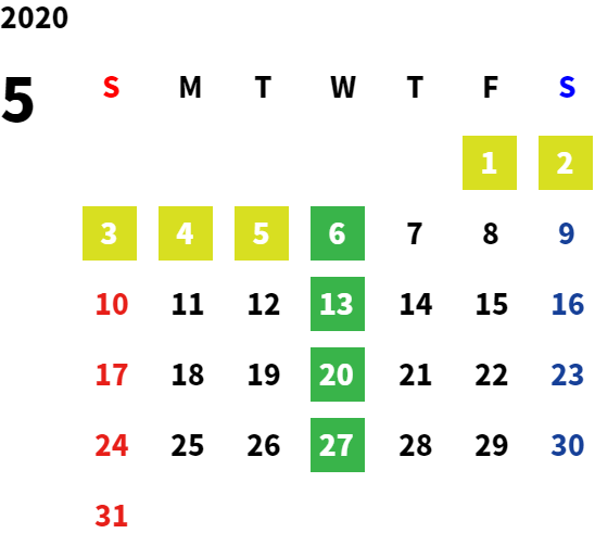 営業日カレンダー