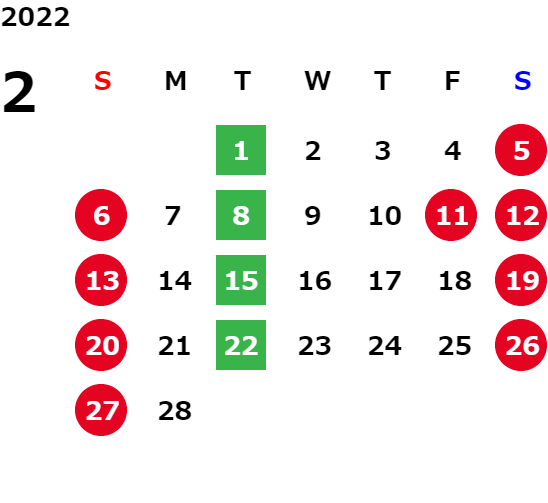 毎週火曜日(祝日・夏季・年末年始除く)