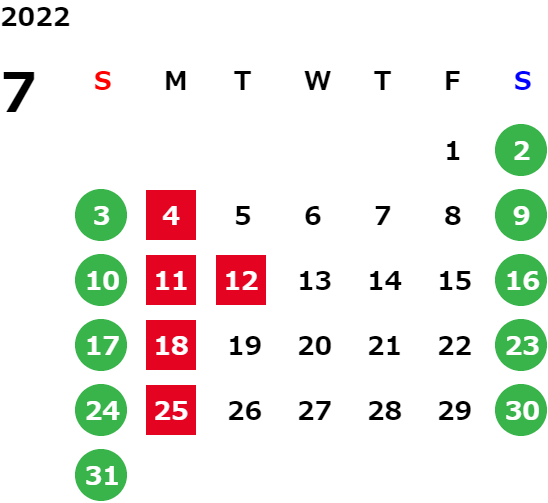 ※詳しくは営業日カレンダーをご覧ください。