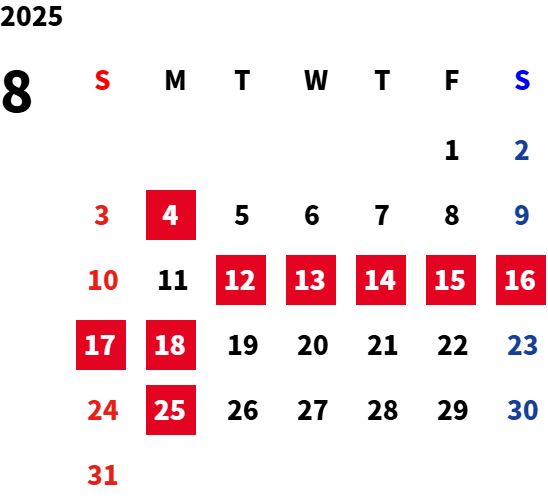 GW、盆、年末年始連休有