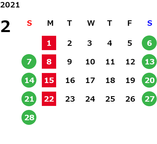 ※詳しくは営業日カレンダーをご覧ください。