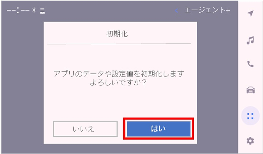 「全てのドライバー登録情報とコンテンツ、設定を初期化します」とポップアップが表示された場合は、「初期化」をタッチ