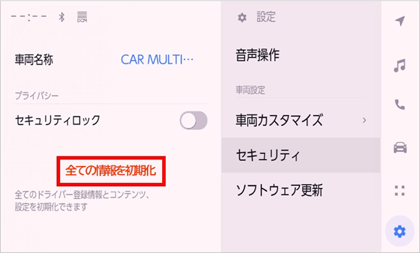 ナビに登録された個人情報の初期化