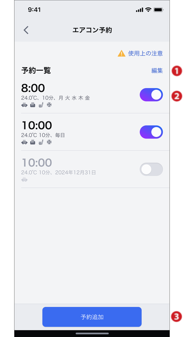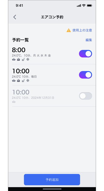 エアコンの予約を確認、追加する