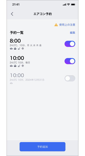 エアコンの予約を確認、追加する