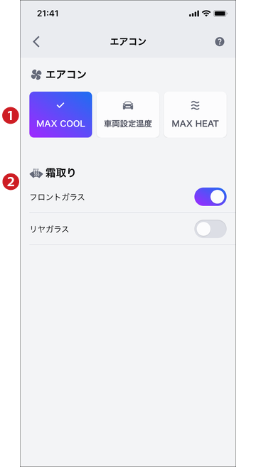 車両に装備が搭載されていても、スマホからの操作に対応していない場合、項目は表示されません。