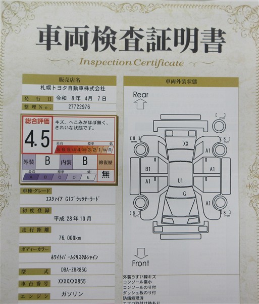 ※ 「修復歴あり」の場合、修復部位の詳細につきましては、販売店へお問い合わせください。