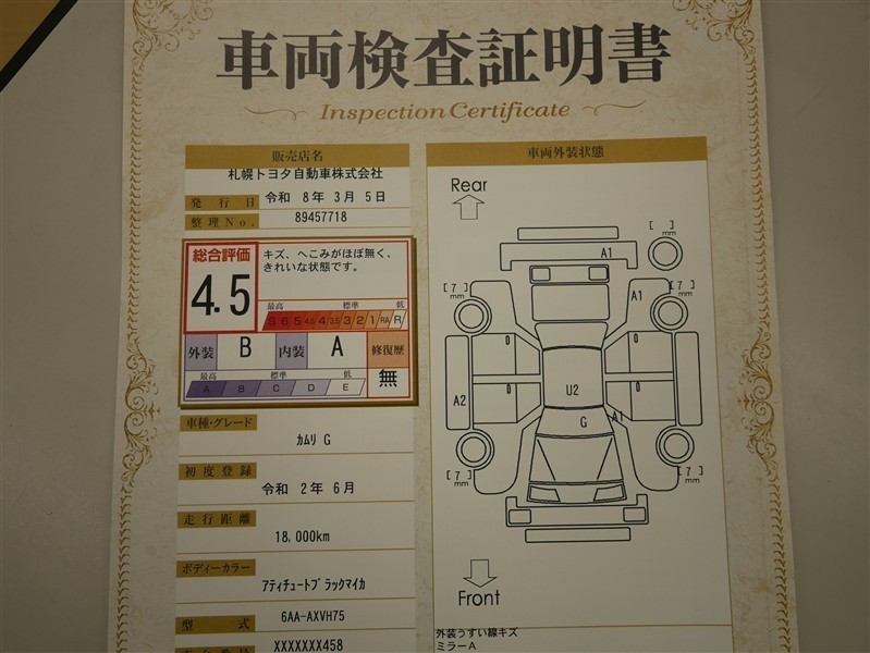 ※ 「修復歴あり」の場合、修復部位の詳細につきましては、販売店へお問い合わせください。
