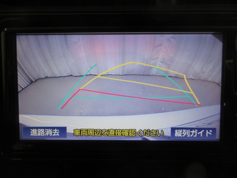 バックに入れると車両後方をナビ画面に表示!予測進路をガイド線で表示するのでバックの車庫入れも安心!
