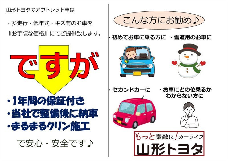・諸費用6.2万円(保険料・税金・自動車リサイクル料金・その他登録に伴う費用)を登録時までに現金で別途申し受けます。