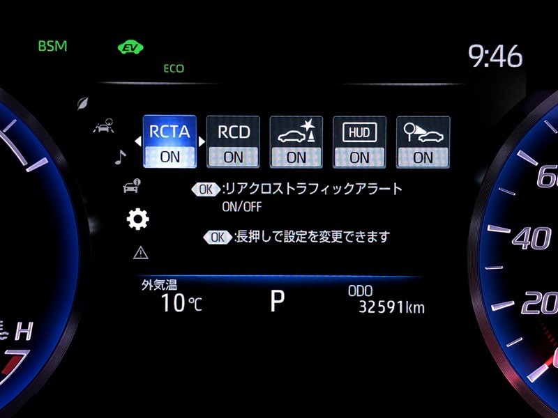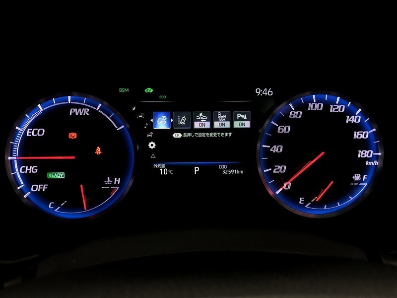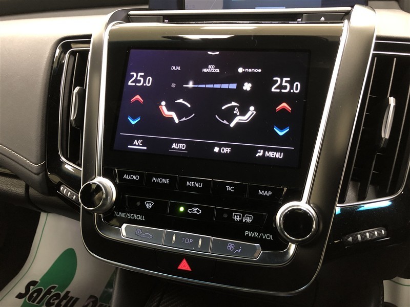 トヨタマルチオペレーションタッチでは、マルチメディア操作・空調操作・車両設定操作が可能です。通常時はエアコン画面が表示されています。