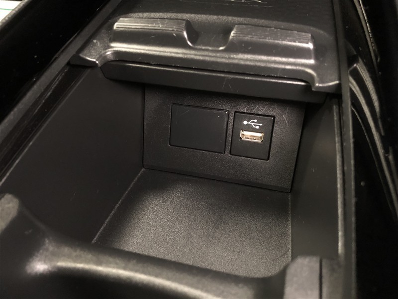 フロントコンソールのスマホトレイをスライドさせると、ディスプレイオーディオ通信用USB端子(Type-A)が設置されています。給電も可能です。コードを格納するためのスペースもありスマートに使えます♪