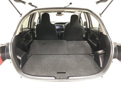 シート肩口にあるロック解除ノブを引けば、シートを前倒しにできるので、長尺の荷物も収納可能です。6:4分割可倒式シートなので、片側だけ倒して使用するなどシーンに応じた使い方が可能です。