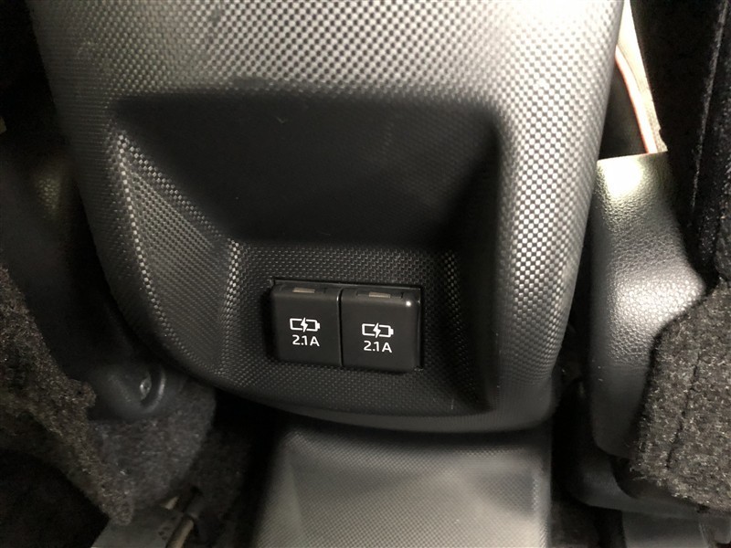 センターコンソールボックス下部には充電用USB端子が2個設置されています。後席に座る方も、気兼ねなくスマートフォン等の充電が可能です。