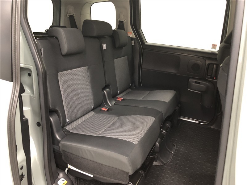 低床&フラットフロアでお子様やご年配の方も安心して乗降車可能です!ゆとりの2列目スペースは、前後席間隔を確保することで、大きめの買い物かごが足元に置けるほど広いスペースを実現!