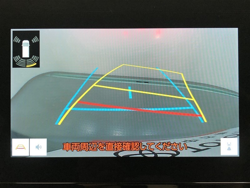 【バックガイドモニター】後方の映像をナビ画面に表示するだけでなく、ステアリング操作に連動して動くガイド線も同時に表示!予想進路の確認をしながら後退できるので便利です!