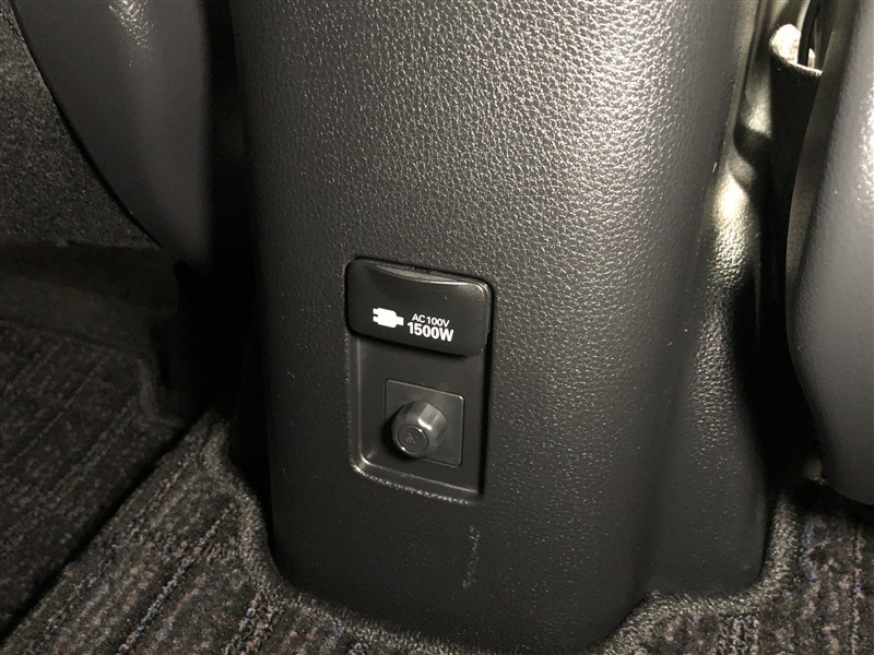 コンソールボックス後部にはアクセサリーコンセント(AC100V・1500W)が設置されています。非常時給電システム付き。停電などの非常時に電気製品が使えます。機能の詳細は展示店舗までお尋ねください。