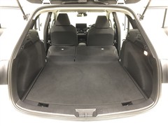 セカンドシートを立てたままでも十分な収納量です。デッキボードは裏面が樹脂のリバーシブル仕様となっているので、反転させれば汚れた荷物も気兼ねなく載せられます。