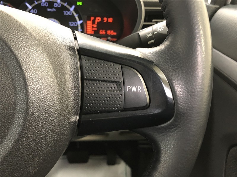 ステアリングの「PWR」スイッチで、パワー走行モードへの切り替えが可能です。エンジン回転数を高い状態にキープし、アクセル操作に対し、優れたレスポンスをもたらします。