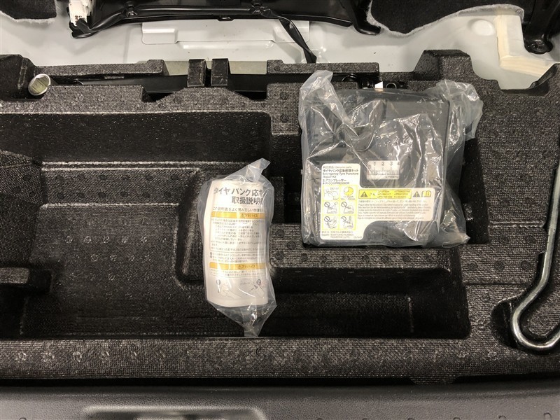 パンク修理キットです。補修材が入ったボトルとコンプレッサーがセットになっています。