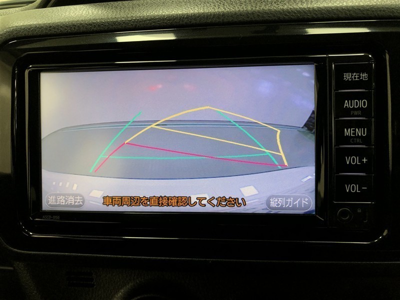 【バックガイドモニター】後方の映像をナビ画面に表示するだけでなく、ステアリング操作に連動して動くガイド線も同時に表示!予想進路の確認をしながら後退できるので便利です!