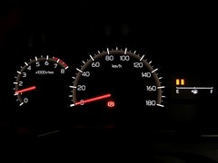 昼間でも見やすいオプティトロンメーターです。運転席前に配置し、フードを低く抑えることで運転中の視界の邪魔にならないので、視界も良好です!