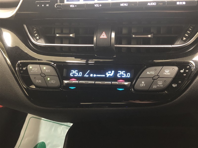 【左右独立温度コントロールフルオートエアコン】室内空間を効率的に快適な空間に保ってくれます。暖気を逃さないようヒーターユニットを2層化し、暖房効率を向上。低燃費にも貢献します。