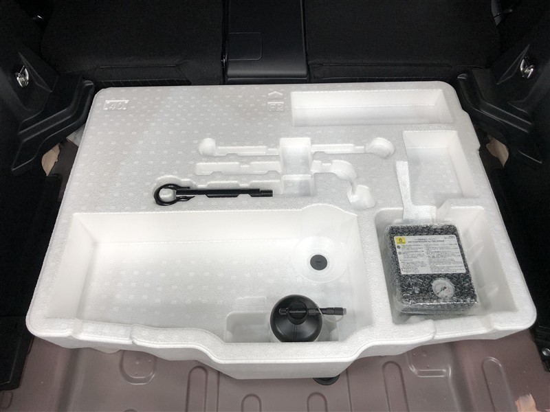 パンク修理キットです。補修材が入ったボトルとコンプレッサーがセットになっています。※ジャッキ&レンチ等の工具は非搭載となります。詳しくは展示店舗までお尋ねください。