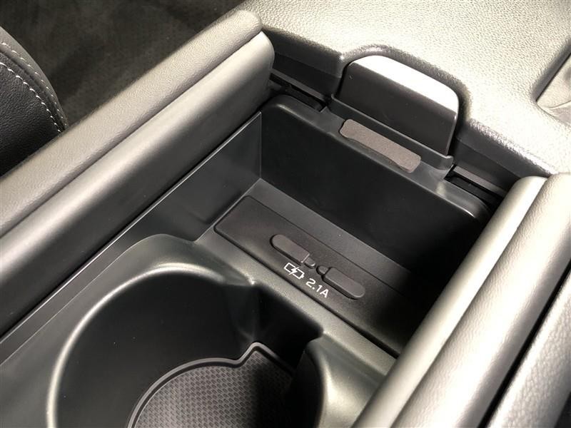 センターコンソールボックスは、観音開き、かつ落ち込み開閉式です。使用しないときはフタを閉めてスッキリとした見た目に!充電用USB端子も設置されているので、気兼ねなくスマートフォンなどの充電が可能です。