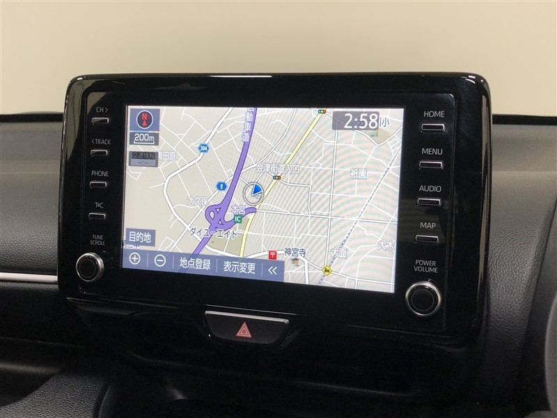 【8インチディスプレイオーディオ】各種オーディオ機能とスマホ連携機能を搭載。ナビキットを装着しているので、車載ナビとしても使用可能です。機能の詳細につきましては、店舗スタッフまでお尋ねください。