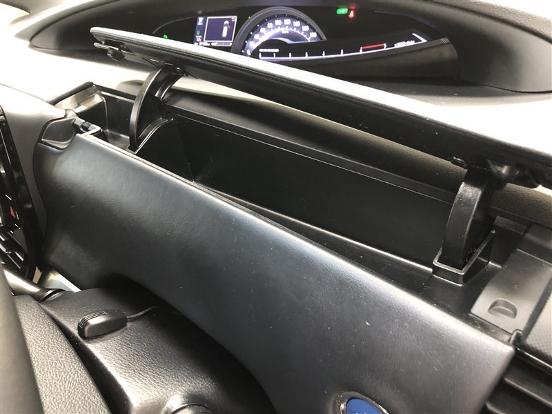 運転席側アッパーボックスです。薄型なので、駐車券や小銭など散らかりやすい小物類を収納しておくのに便利です。