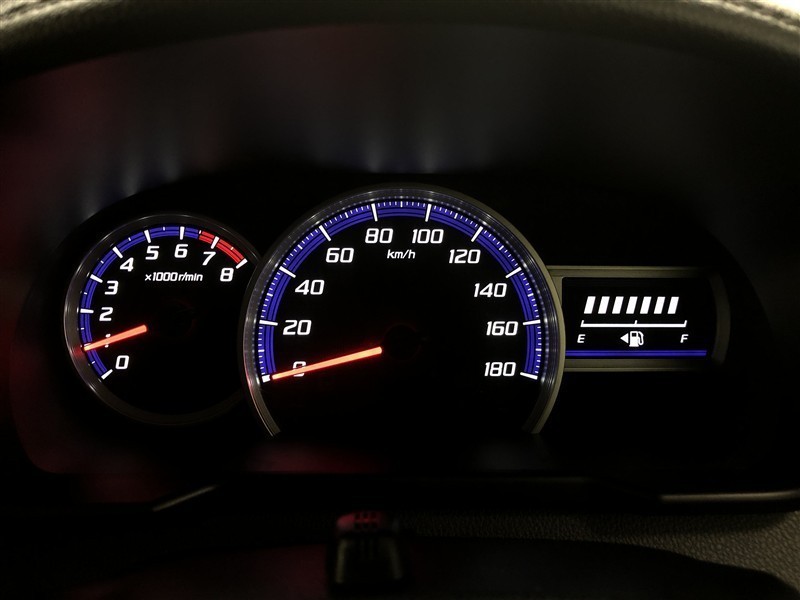 昼間でも見やすいオプティトロンメーターです。運転席前に配置し、フードを低く抑えることで運転中の視界の邪魔にならないので、視界も良好です!