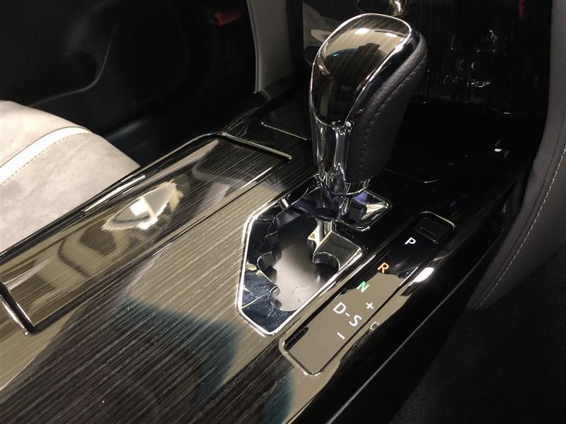 ブラックレイヤーウッド調加飾パネルは、インストルメントパネル、ドアトリム、センターコンソールやシフトノブに使用されています。3Dドライ転写により、積層本杢目の優美な表情を再現しています。