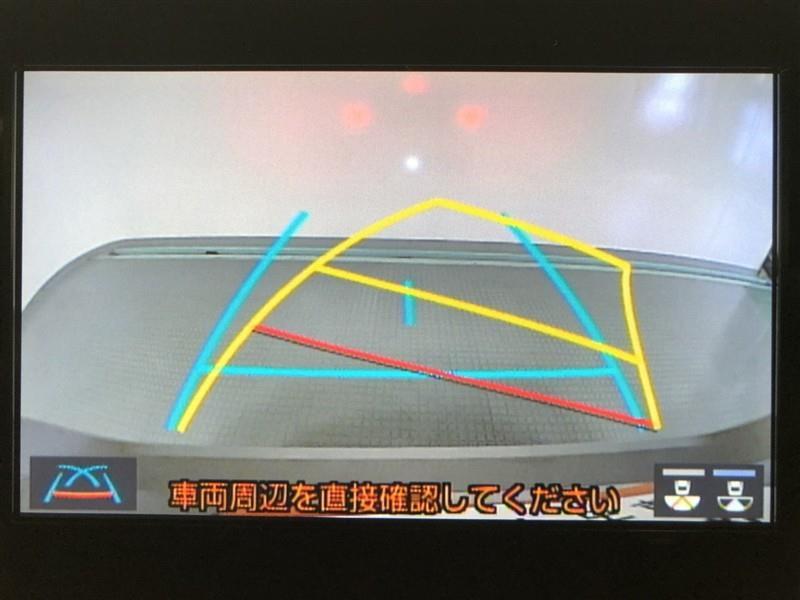 【バックガイドモニター】後方の映像をナビ画面に表示するだけでなく、ステアリング操作に連動して動くガイド線も同時に表示!予想進路の確認をしながら後退できるので便利です!