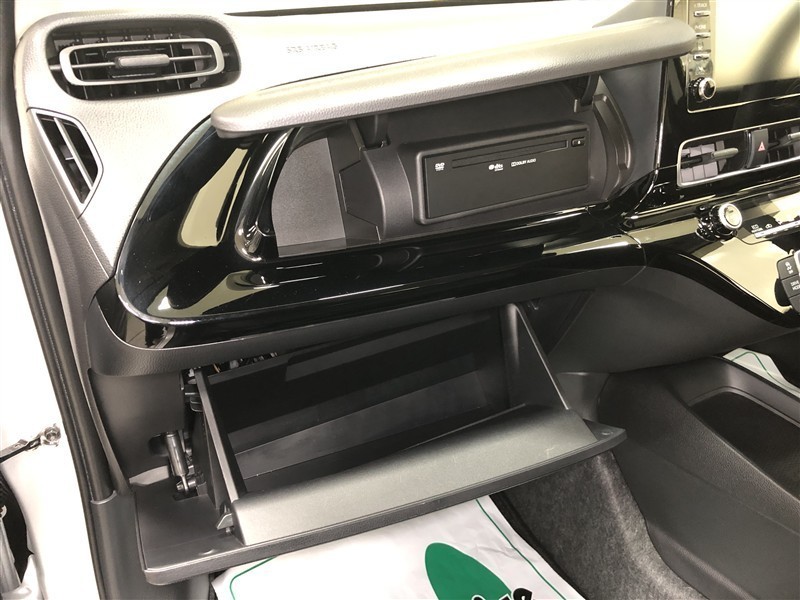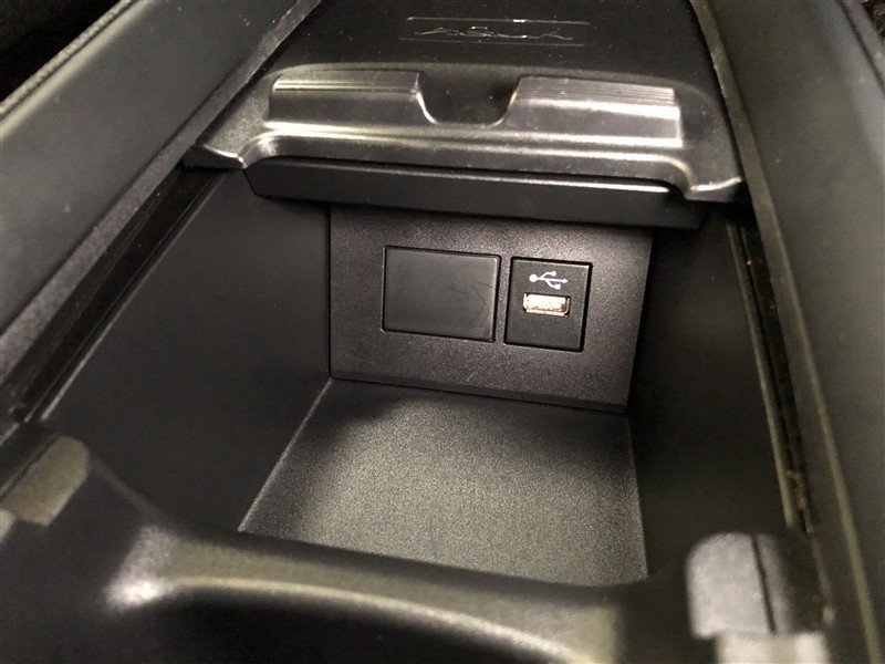 フロントコンソールのスマホトレイをスライドさせると、ディスプレイオーディオ通信用USB端子(Type-A)が設置されています。給電も可能です。コードを格納するためのスペースもありスマートに使えます♪