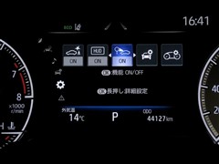 【左右独立温度コントロールフルオートエアコン】運転席側・助手席側それぞれでエアコン温度の調整が可能です。ガソリン車には、後席に乗員がいない場合は前席のみ空調を行う制御を搭載。燃費向上に寄与します。
