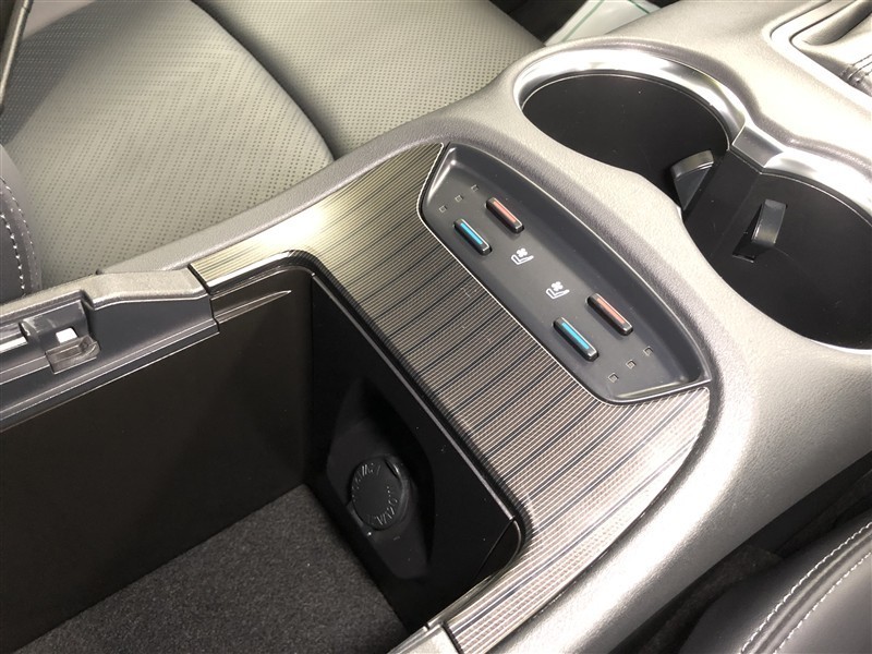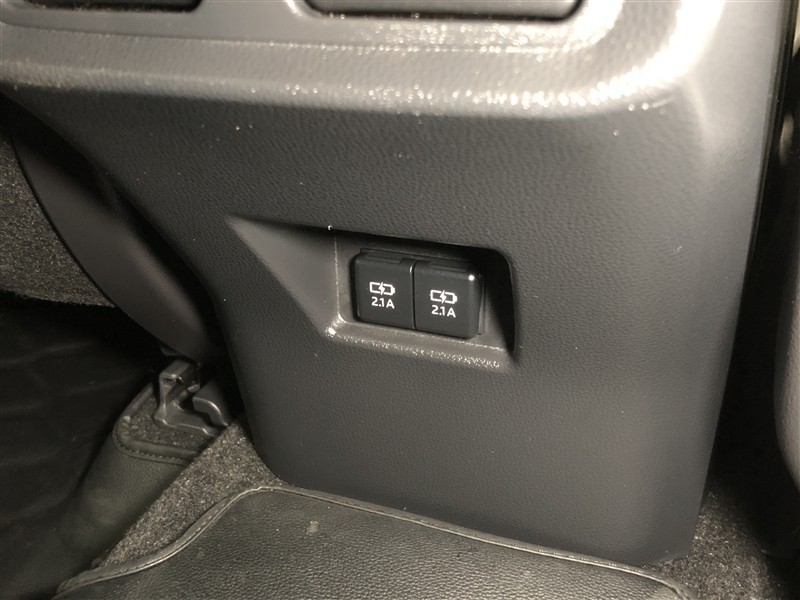 センターコンソールボックス後端には充電用USB端子が2個付きます。後席に座っていてもスマホやタブレットの充電ができて便利です。
