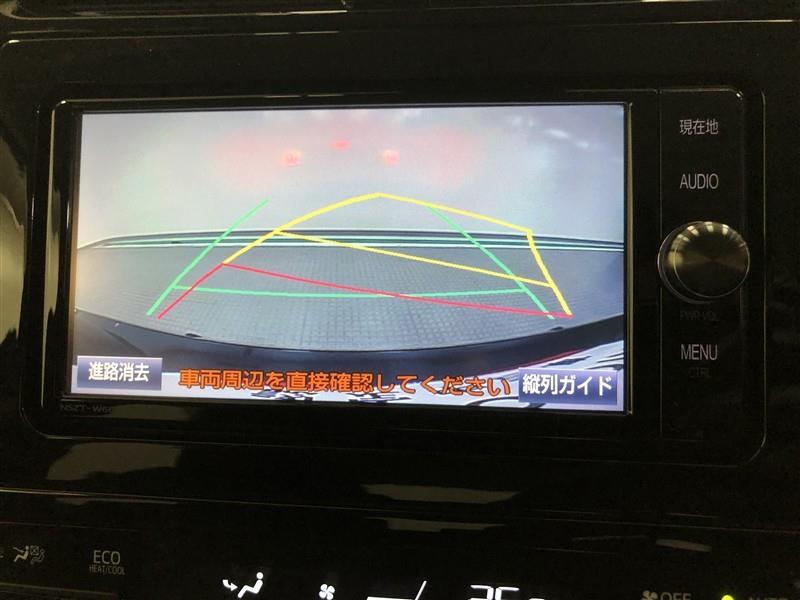 【バックガイドモニター】後方の映像をナビ画面に表示するだけでなく、ステアリング操作に連動して動くガイド線も同時に表示!予想進路の確認をしながら後退できるので便利です!