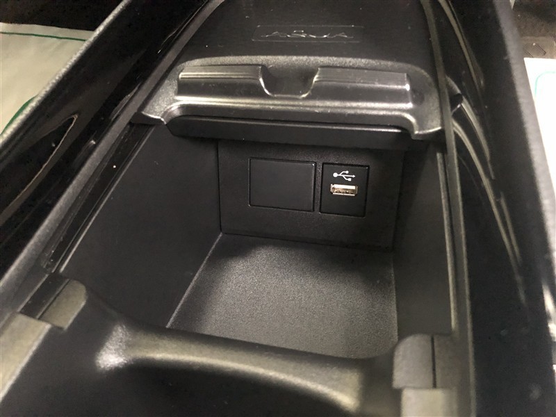 フロントコンソールのスマホトレイをスライドさせると、ディスプレイオーディオ通信用USB端子(Type-A)が設置されています。給電も可能です。コードを格納するためのスペースもありスマートに使えます♪