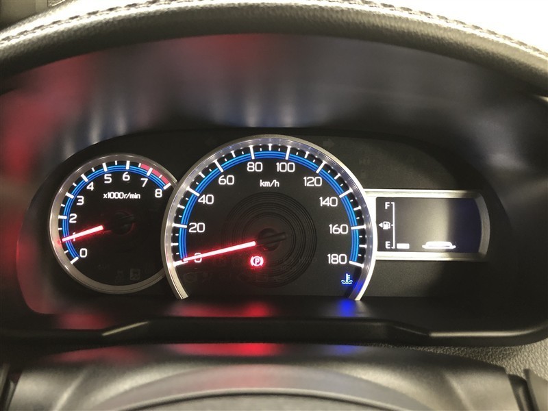 昼間でも見やすいオプティトロンメーターです。運転席前に配置し、フードを低く抑えることで運転中の視界の邪魔にならないので、視界も良好です!