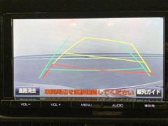 【バックガイドモニター】後方の映像をナビ画面に表示するだけでなく、ステアリング操作に連動して動くガイド線も同時に表示!予想進路の確認をしながら後退できるので便利です!