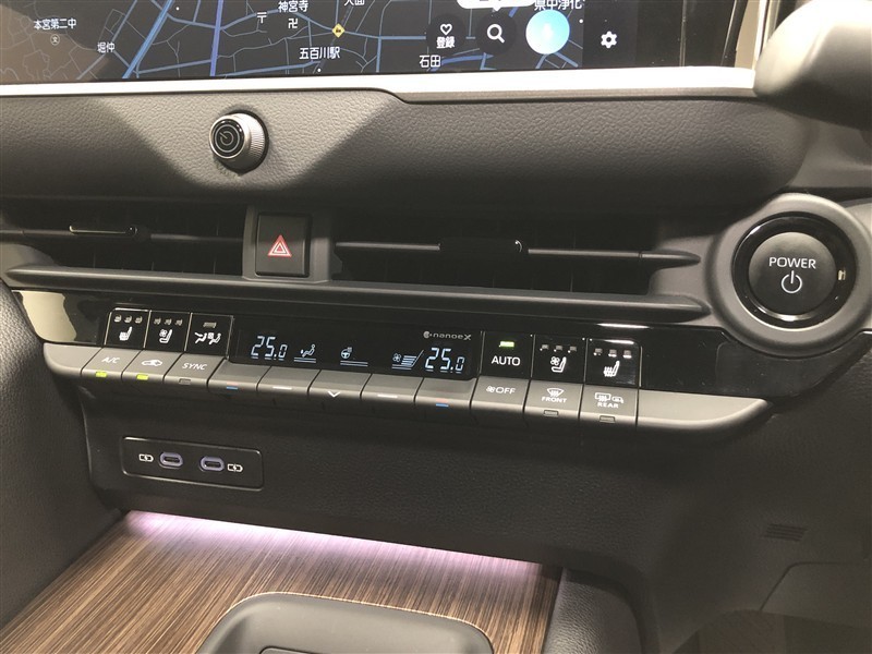 【3席独立温度コントロールフルオートエアコン】運転席・助手席+後席で好みに合わせて温度設定が行えます。シートヒーター等を自動制御するオールオート機能も搭載。乗員それぞれが快適に過ごせます。