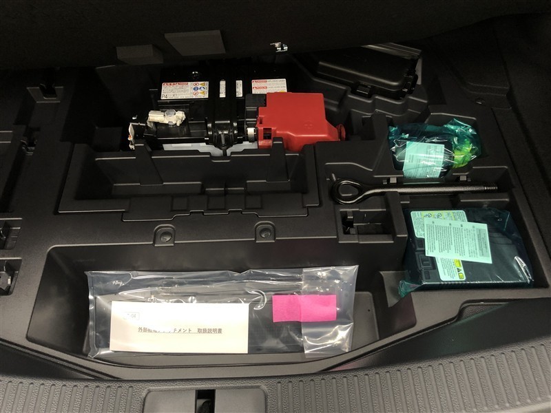 アクセサリーコンセント(AC100V・1500W)です。ラゲージルーム右側に設置されています。非常時給電システムも搭載しています。機能の詳細につきましては、展示店舗までお尋ねください。
