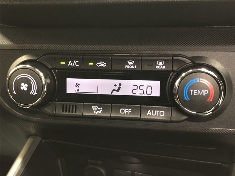 オートエアコンです。運転席から操作しやすいよう、使用頻度の高いスイッチを運転席側にレイアウトしています。
