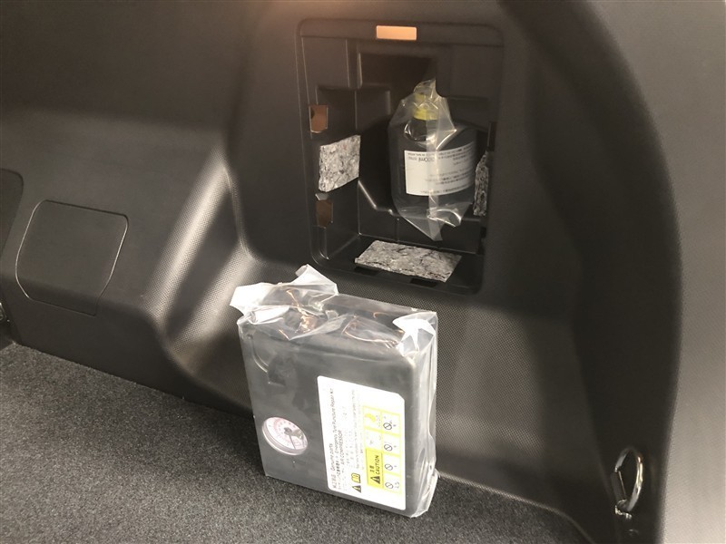 パンク修理キットです。補修材が入ったボトルとコンプレッサーがセットになっています。