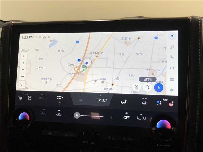運転席は8ウェイパワーシートになっています。前後スライド、リクライニング、シート上下の各調整を無段階に電動で行えます。また、腰部を支えるランバーサポートの調整も可能です。