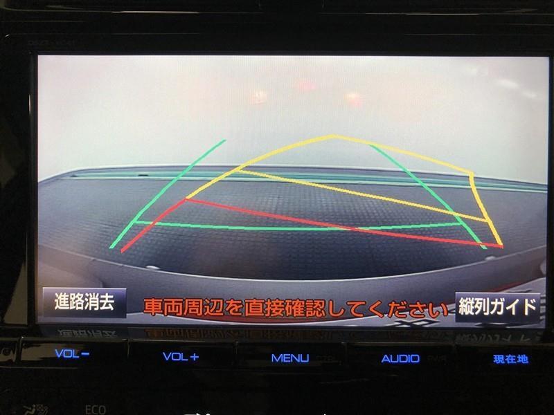 【バックガイドモニター】後方の映像をナビ画面に表示するだけでなく、ステアリング操作に連動して動くガイド線も同時に表示!予想進路の確認をしながら後退できるので便利です!